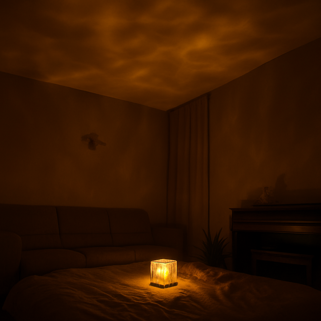 Imagine lying back and letting the waves of light wash over you. Whether you’re curling up with a book, winding down after a long day, or setting the mood for some cozy reading or music night — this lamp effortlessly elevates your space with calm and wonder.